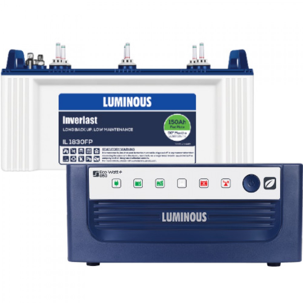 Product Code: Luminous Eco Watt +900va Square Wave Inverter & Luminous IL1830FP 150AH Flate Plate Battery 24% OFF